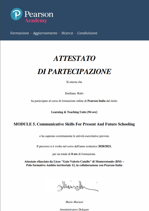Learning & Teaching Units - Attestato Di Partecipazione – MODULE 5. Communicative Skills For Present And Future Schooling (8 ore)