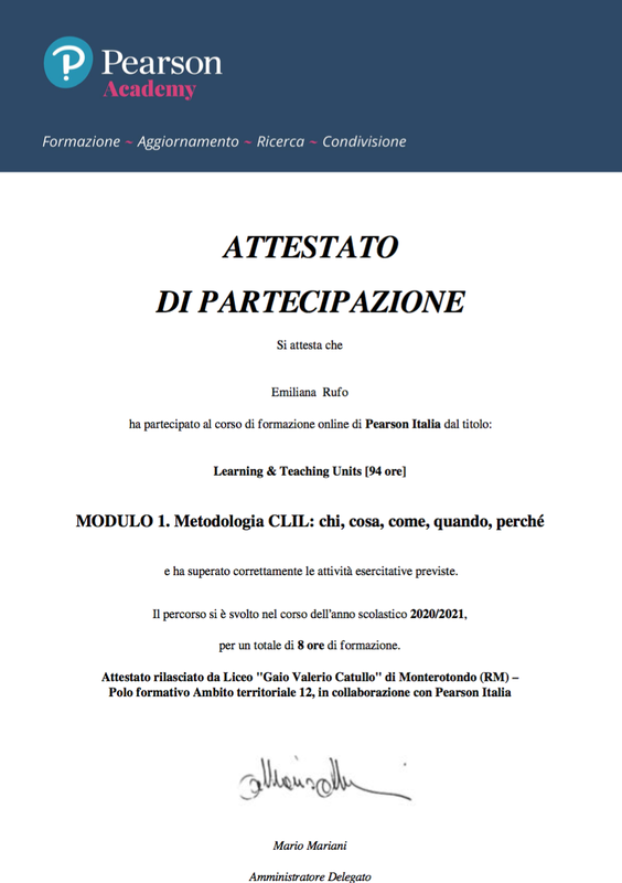 Learning & Teaching Units - Attestato Di Partecipazione – Modulo 1. Metodologia CLIL (8 ore)