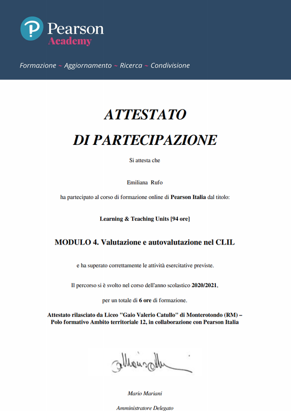 Learning & Teaching Units - Attestato Di Partecipazione – Modulo 4. Valutazione e Autovalutazione nel CLIL (6 ore)