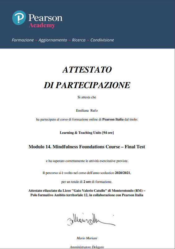 Learning & Teaching Units - Attestato Di Partecipazione – Modulo 14. Mindfulness Foundations Course - Final Test (2 ore)