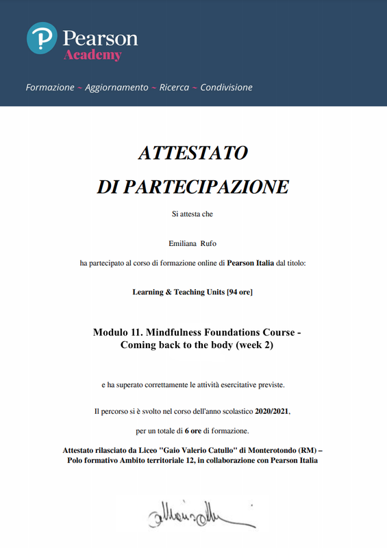 Learning & Teaching Units - Attestato Di Partecipazione – Modulo 11. Mindfulness Foundations Course - Coming back to the body (6 ore)
