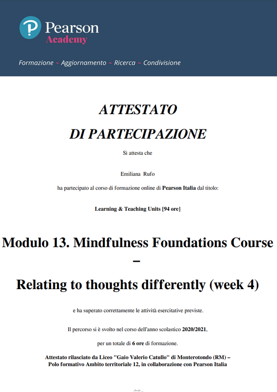 Learning & Teaching Units - Attestato Di Partecipazione – Modulo 13. Mindfulness Foundations Course - Relating to thoughts differently (6 ore)