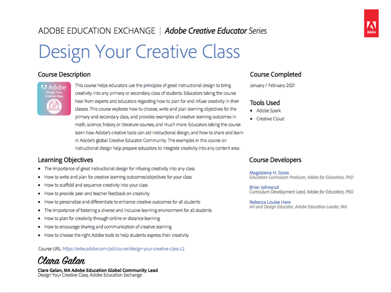 Adobe Creative Educator Level II course: "Design Your Creative Class"
