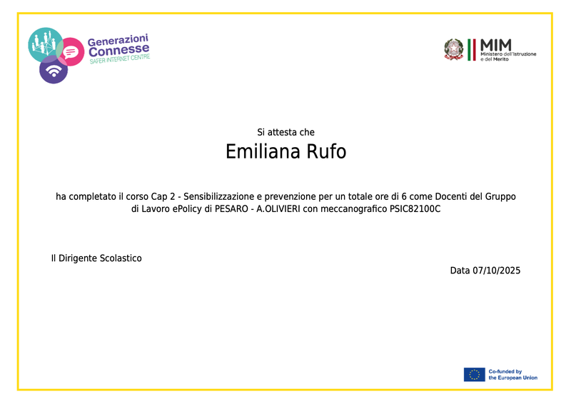 Corso Gruppo di Lavoro ePolicy - SIC - Generazioni Connesse - Referente di Istituto
